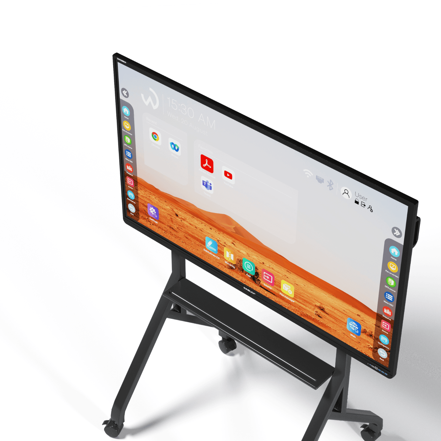 Questo carrello versatile per monitor interattivi offre un’ampia compatibilità con la maggior parte delle dimensioni di schermo, rappresentando una soluzione ideale per uffici, sale riunioni e altri spazi collaborativi. Dotato di ruote scorrevoli e freni di sicurezza, garantisce mobilità fluida e stabilità ovunque sia necessario. Il design con altezza regolabile, da 157,6 a 176,1 cm, consente una facile personalizzazione dell’altezza di visione, offrendo un’esperienza visiva ottimale e confortevole per tutti gli utenti.